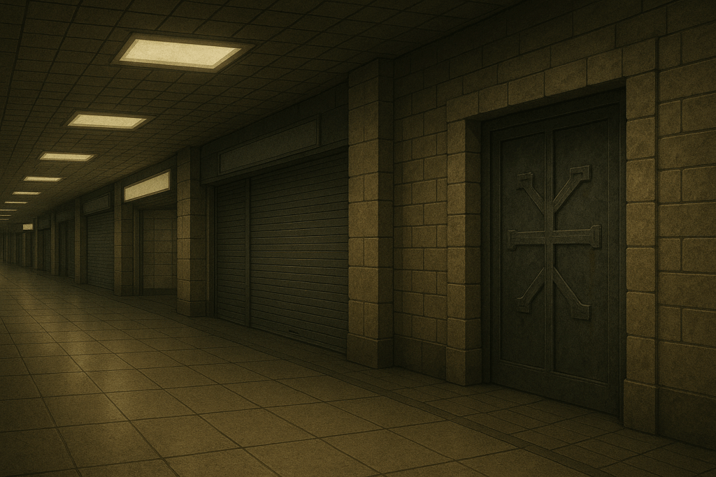取材許可を得て、僕は夜の地下街に入った。 深夜2時。人影はなく、蛍光灯の音だけが耳を刺す。 壁の一角に、確かに違和感があった。 他よりわずかに新しいコンクリート、目地の粗さ。 手のひらを押し当てると――鈍い“空洞音”が返ってくる。