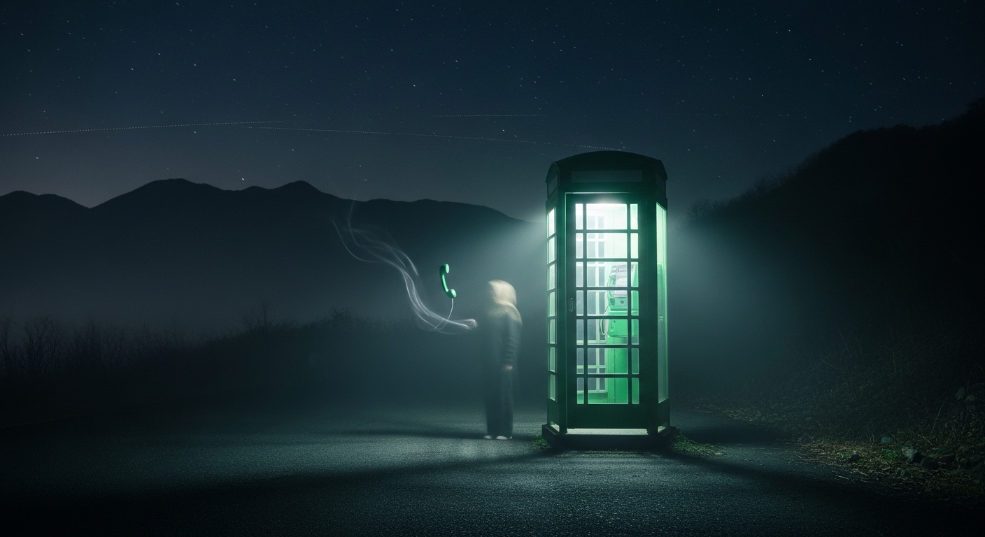 夜、郊外の山道を走っていると、林の中にぽつんと立つ緑色の電話ボックスがある。