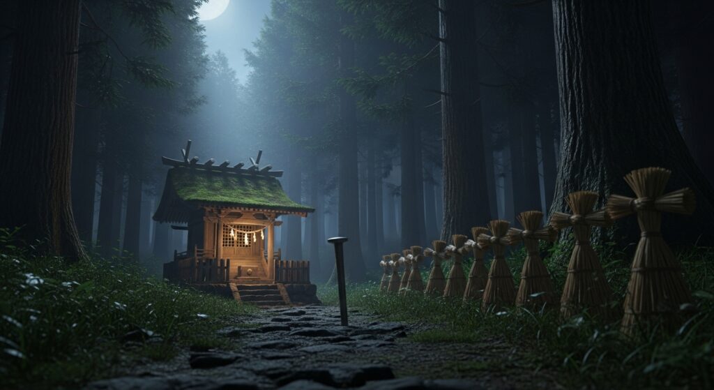 この記事は、都市伝説・心理ホラー的な考察であり、実際の祠・神社・個人に対する呪術行為等を肯定するものではありません。夜間の山中を歩くことには危険が伴います。安全確保を最優先とし、地域のルール・所有者の許可を尊重してください。
